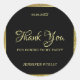 Modèle de texte de remerciement manuscrit avec paillettures dorées Autocollant rond classique.
