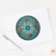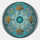 Joli autocollant de motifs floraux médiévaux colorés et vibrants en argent, cuivre, vert, bleu et blanc.