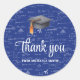 Sticker Rond Modern Black Cap Math Graduation Blue Thank You