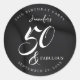 Sticker Rond Modern Elegant Black White Fifty Fabulous Birthday