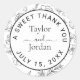 The design features a delicate black and white floral line art border encircling the classic "A Sweet Thank You" message in bold, modern typography. Centered are the couple's names in an elegant serif font with a graceful script "and," followed by the wedding date for a truly personalized keepsake.