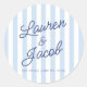 Sticker Rond Modern Minimal Minimalist Blue Stripes Wedding