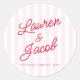 Sticker Rond Modern Minimal Minimalist Red Pink Stripes Wedding