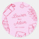 Sticker Rond Modern Pink & Red Wedding sketch Favor