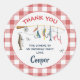 Sticker Rond Modern Red Gingham Fishing Birthday