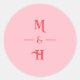 Sticker Rond Modern Retro Monogram Pink & Red Wedding