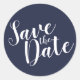 Sticker Rond Modern Script Marine Blue Wedding Enregistrer la d