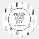 Sticker Rond Moderne Black & Gold Peace Love Joie Arbre de Noël