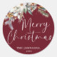 Sticker Rond Moderne Elegant Rouge Joyeux Noël Botanique