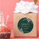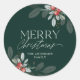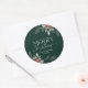 Cet autocollant rond de Noël présente une élégante verdure d'hiver et des baies sur un arrière - plan vert foncé. Le design est accentué par le texte de style manuscrit tendance "Joyeux Noël" qui offre une touche de sophistication.