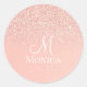 Autocollant rond classique de monogramme de nom scintillant de paillettes roses modernes. Autocollant rond de monogramme de nom scintillant de paillettes roses élégant.