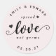 Douche nuptiale sur mesure / fête de mariage désinfectant à la main pour les étiquettes / autocollants avec "l'amour étendu pas les germes" dans le script de brosse à la main avec un design de coeurs charmant.