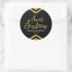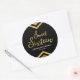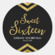 Cet autocollant rond moderne comporte un élégant chevron géométrique et le mot "Sweet sixteen" en faux or contre un arrière - plan noir. Consultez les invitations et les éléments correspondants ici http://www.zazzle.com/collections/modern_faux_gold_chevron_celebration_collection-119531050277382712?rf=238364477188679314 Personnalisez-le avec vos détails en remplaçant le texte de l'espace réservé. Pour plus d'options, cliquez sur le bouton "Customiser". *Veuillez noter que le filigrane Zazzle qui apparaît dans l'aperçu du zoom n'apparaîtra PAS sur le produit imprimé final. © Bois de rose et agrumes