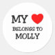 Utilisez l'outil de recherche de mon magasin pour d'autres marchandises MOLLY. My Heart Appartient à MOLLY produits disponibles sur les chemises, sweatshirts, chemises pour enfants, onsies pour bébé, autocollants, magnets, et bien plus de vêtements MOLLY entièrement personnalisables à vos spécifications. Si vous aimez ce que vous voyez, s'il vous plaît lier à mon magasin (www.zazzle.com/ilovemyshirt) ou envoyer un courriel à un ami.