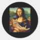 Sticker Rond Mona Lisa Holding Chat Portrait Art Peinture Kitty