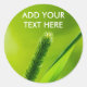Vue macro d'une pointe de fleurs et d'une feuille d'une herbe sauvage, de l'herbe vanille, Anthoxanthum odoratum, de l'herbe vernale douce, de l'herbe sainte ou de l'herbe de buffle contre le terrain vert et la lumière du soleil levant. Le nouveau jour de la planète Terre. Gardons notre planète verte, propre et en paix. Autocollant rond. Personnalisable . Vous pouvez modifier ou supprimer le texte modèle.