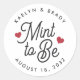 Les stickers de faveur de mariage frais minty sont "menthe to be" en écriture noire douce accentuée de coeurs rouges. Personnalisez avec vos noms et votre date de mariage.