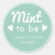 Un design simple pour un autocollant pour décorer une faveur de mariage. L'autocollant est un vert menthe pâle avec une bordure blanche, des coeurs d'amour blancs et un texte blanc disant "Mint to be" avec de l'espace pour vos noms et votre date de mariage ci-dessous. L'idée est que vous l'utilisez pour décorer une petite boîte de menthe ou un paquet de tiques comme une faveur de mariage. Vous pouvez facilement changer les noms en "M. & Mme" si vous préférez et vous pouvez changer la ligne en dessous de votre date de mariage à un petit message de remerciement. Cela fonctionnerait également très bien pour décorer un buffet de bonbons ou un cocktail ou un dessert aromatisé à la menthe.