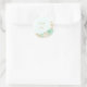 Sticker Rond Monnaie romantique vert & fleurs blanches or