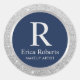 Sticker Rond Monogram Marine Bleu Élégant Parties scintillant e