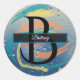 Sticker Rond Monogramme à coups de pinceau sarcelle, orange, ja