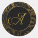 Sticker Rond Monogramme A Gold et Black Mariage damassé Seal