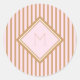Sticker Rond Monogramme à rayures rose et or chic et glam