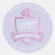 Sticker Rond Monogramme Adresse Couronne Royal Rose Purple RSVP