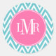 Sticker Rond Monogramme Aqua et Chevrons Rose
