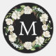 Sticker Rond Monogramme Aquarelle Noir Blanc Floral Wreath