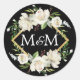 Sticker Rond Monogramme Aquarelle noire Mariage Floral blanc