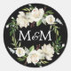 Sticker Rond Monogramme Aquarelle noire Mariage Floral blanc