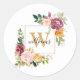 Sticker Rond Monogramme Aquarelle Rose or Fleur Floral