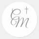 Argent Monogrammé avec croix design présente les initiales de la mariée et du marié dans une belle couleur argentée liée ensemble. Une petite croix est affichée juste au-dessus.