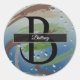 Sticker Rond Monogramme avec coup de pinceau vert, marron et be