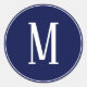 Un autocollant rond classique avec un monogramme blanc sur un arrière - plan bleu marine. Customisez l'autocollant avec vos initiales ou initiales, couleur arrière - plan, entre autres options.