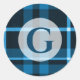 Sticker Rond Monogramme bleu Tartan Plaid
