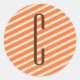 Sticker Rond Monogramme Brown sur bandes diagonales orange rétr