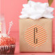 Joli, personnalisable monogramme brun foncé sur chic Retro Orange Diagonal Stripes arrière - plan. Cool, design girly avec grand monogramme personnalisé, vertical. Personnalisez le monogramme avec votre prénom ou votre prénom initial! Grand cadeau personnalisé tendance pour enfants, ados, adolescents ou adultes; garçon ou fille!