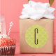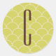 Sticker Rond Monogramme Brown sur Motif vert rétro