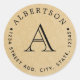Sticker Rond Monogramme classique Nom de famille Adresse de ret