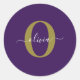 Sticker Rond Monogramme customisé Nom du script Purple White Go