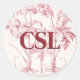 Sticker Rond Monogramme d'art Vintage rose