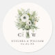 Bouquet de mariage floral blanc avec initiales monogrammes, noms et date. Modifiez la couleur de l'arrière - plan pour qu'elle corresponde à la couleur du mariage.