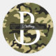 Sticker Rond Monogramme de camouflage vert, Brown et tan