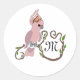 Sticker Rond Monogramme de Cockatoo rose Whimsical