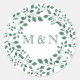 Sticker Rond Monogramme de couronne d'aquarelle Feuille verte