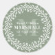 Sticker Monogramme en Sage Vert et Blanc - étiquette élégant monogrammed vert et blanc pour les faveurs qui comprend un monogramme personnalisé, noms de marié et de marié, nom de famille, et modèles de date mariage entouré d'une couronne d'art floral. ©sweetwhimsypaperie
