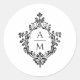 Sticker Rond Monogramme de crête Elegant Mariage noir et blanc