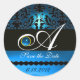 STICKER ROND MONOGRAMME DE DAMASK EN SAPHIRE NOIR ET BLEU,